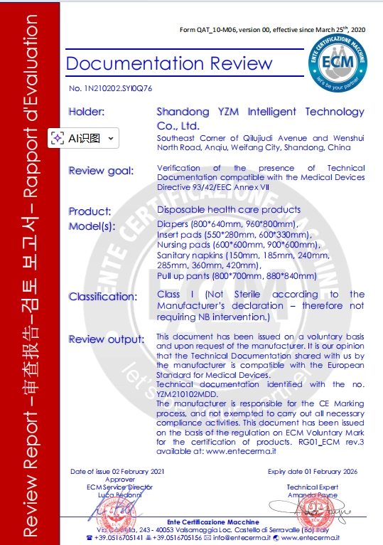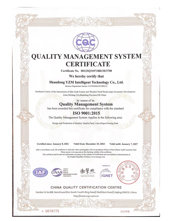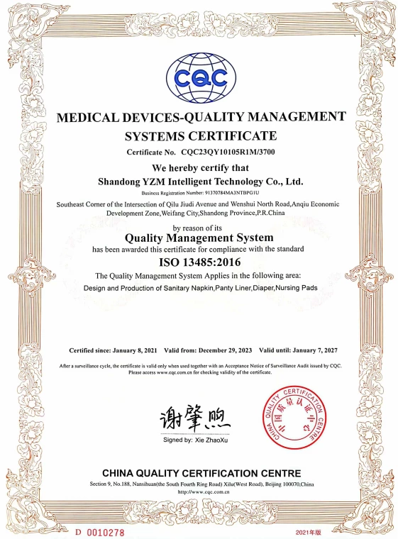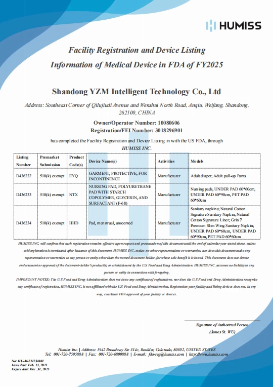 Shandong YZM Intelligent Technology Co.,Ltd with the branch Wholesome Hygiene Products,. specializes in R&D and production of absorbent hygiene products—including adult diapers, adult pull-up pants, disposable underpads/pet pads, diaper liners,sanitary napkin and period pants. Our offerings are particularly popular in Europe, America and Southeast Asia, while also being exported to markets worldwide.
